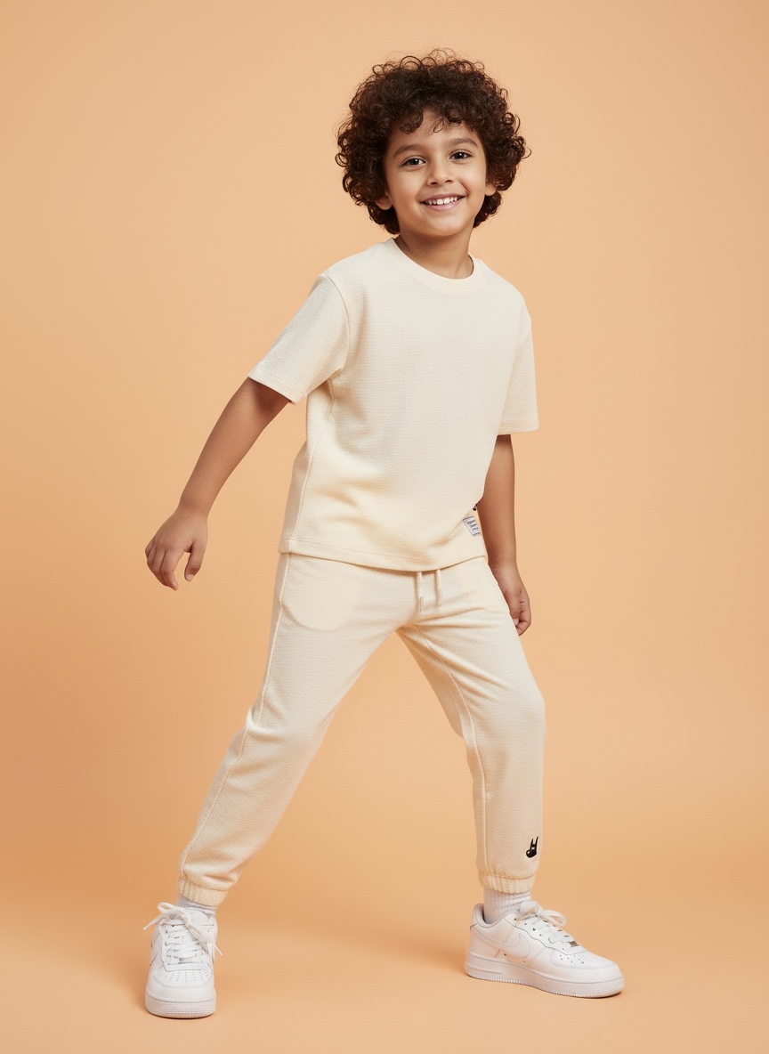 Warm Ivory Unisex Cotton T-Shirt & Joggers Combo